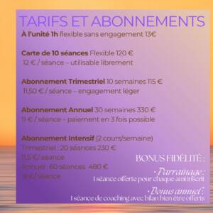 Cours collectifs en ligne : Vinyasa, Yin, Hatha, Yoga du monde : 1h /13€ (tarifs ci dessus)