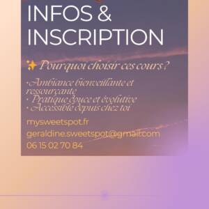Pour toutes questions n’hésitez pas à me contacter via whatsapp au 0615027084 ou par mail : geraldine.sweetspot@gmail.com